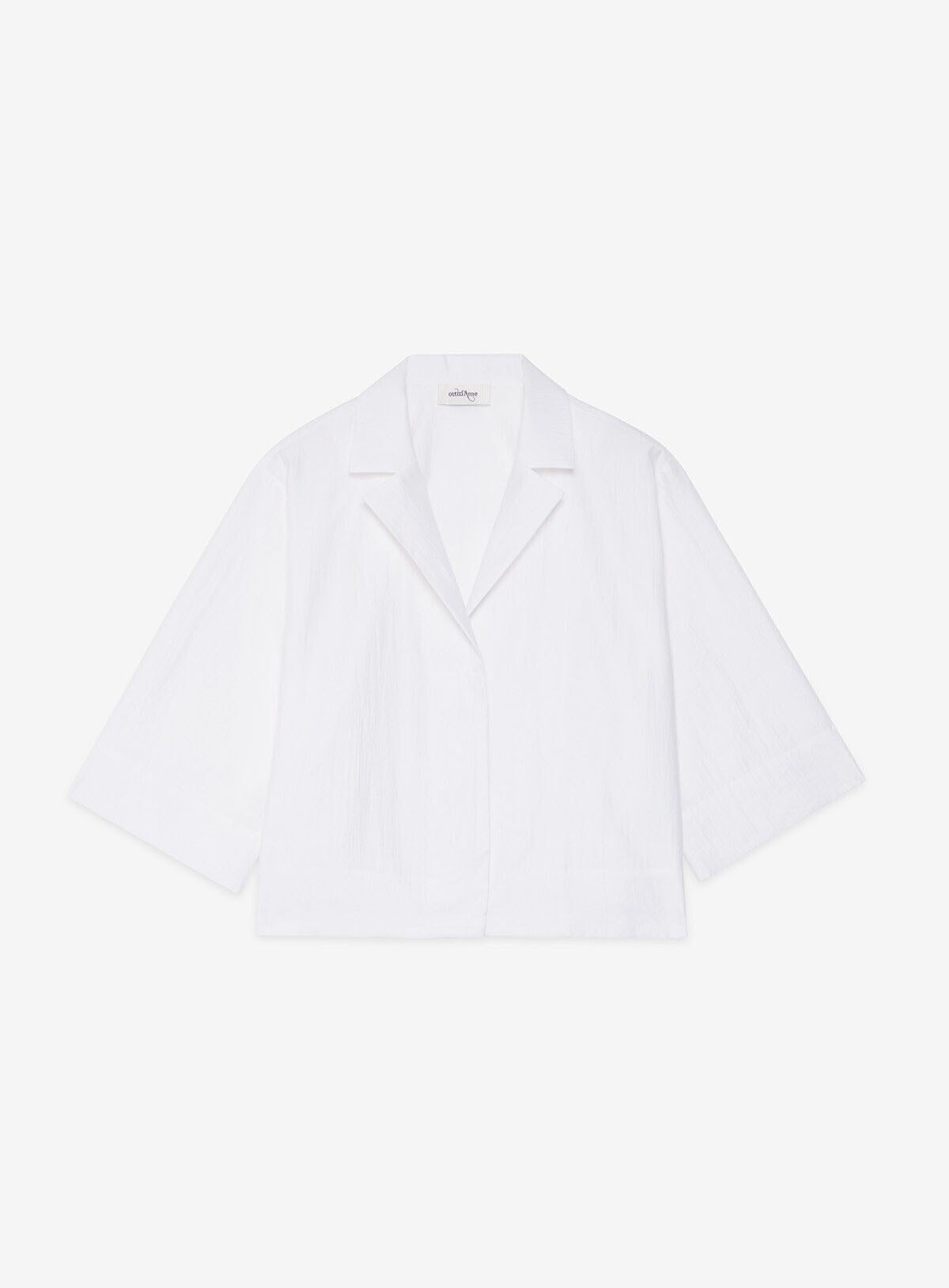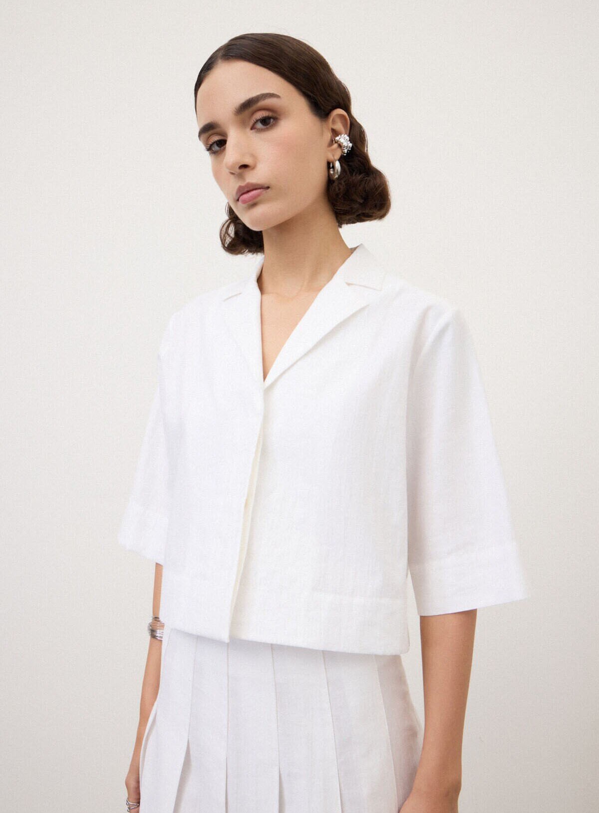 Pensée pour un vestiaire contemporain, cette pièce combine fraîcheur et minimalisme. Les manches courtes renforcent son allure estivale tandis que la matière légère assure confort et respirabilité tout au long de la journée. Le subtil effet froissé du tissu lui confère une dimension organique et naturelle, idéale pour composer des looks simples mais raffinés.