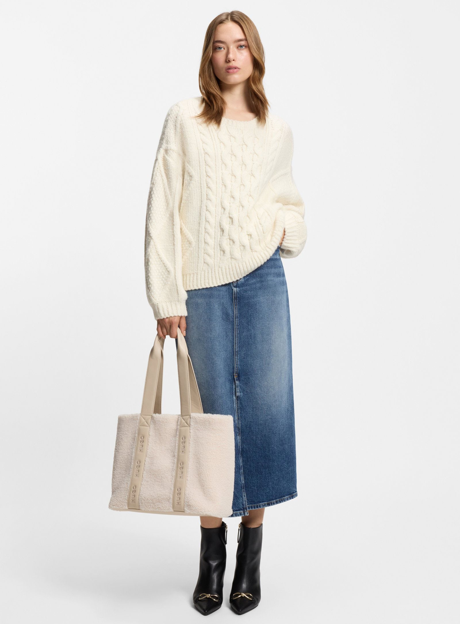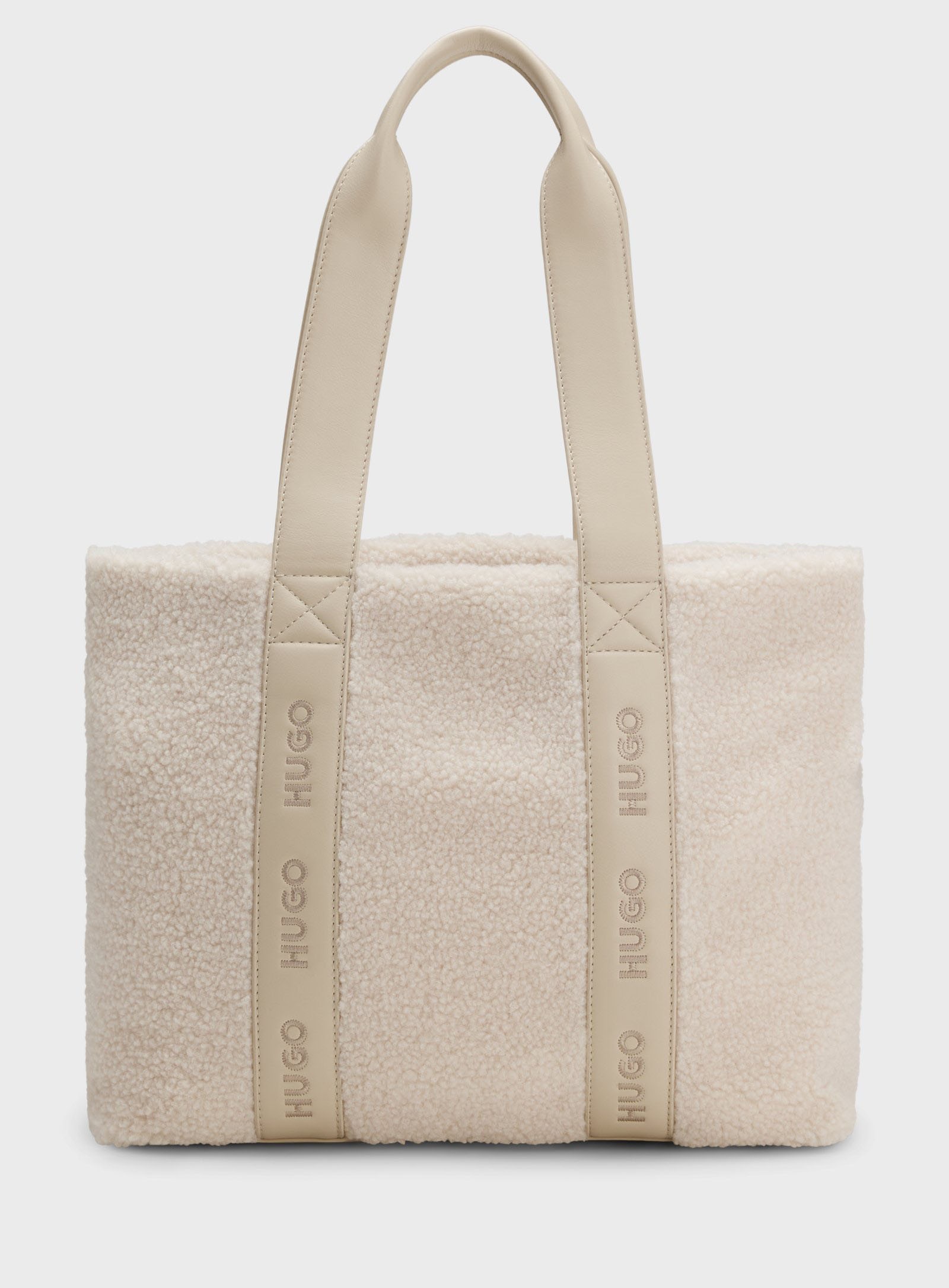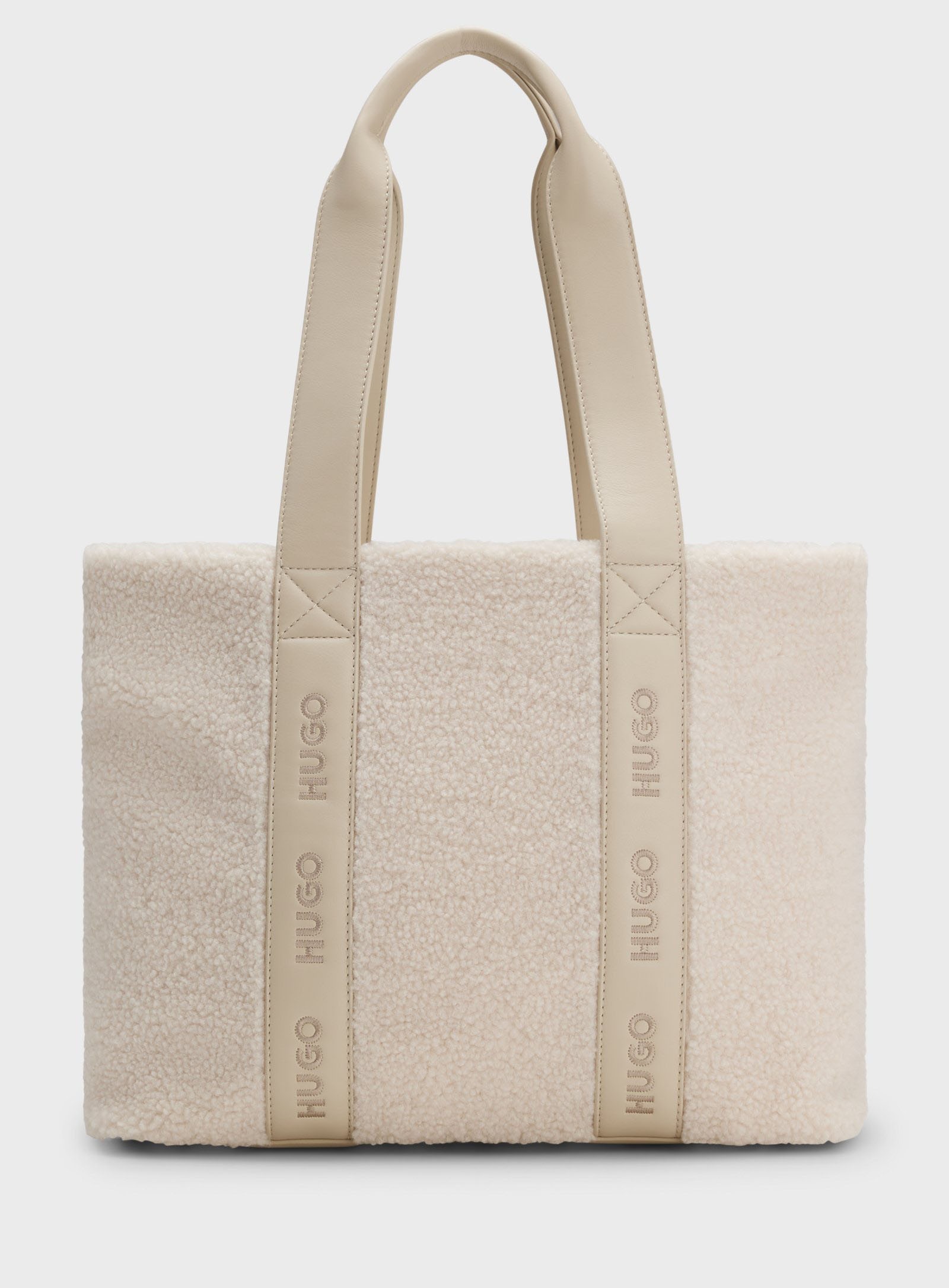 Original et moelleux, ce cabas HUGO en fausse peau de mouton apporte une touche cosy à vos journées. Dessus ouvert pour un accès rapide, bandoulières/poignées logotypées, poche intérieure zippée et quincaillerie argent poli : pratique, léger et stylé.