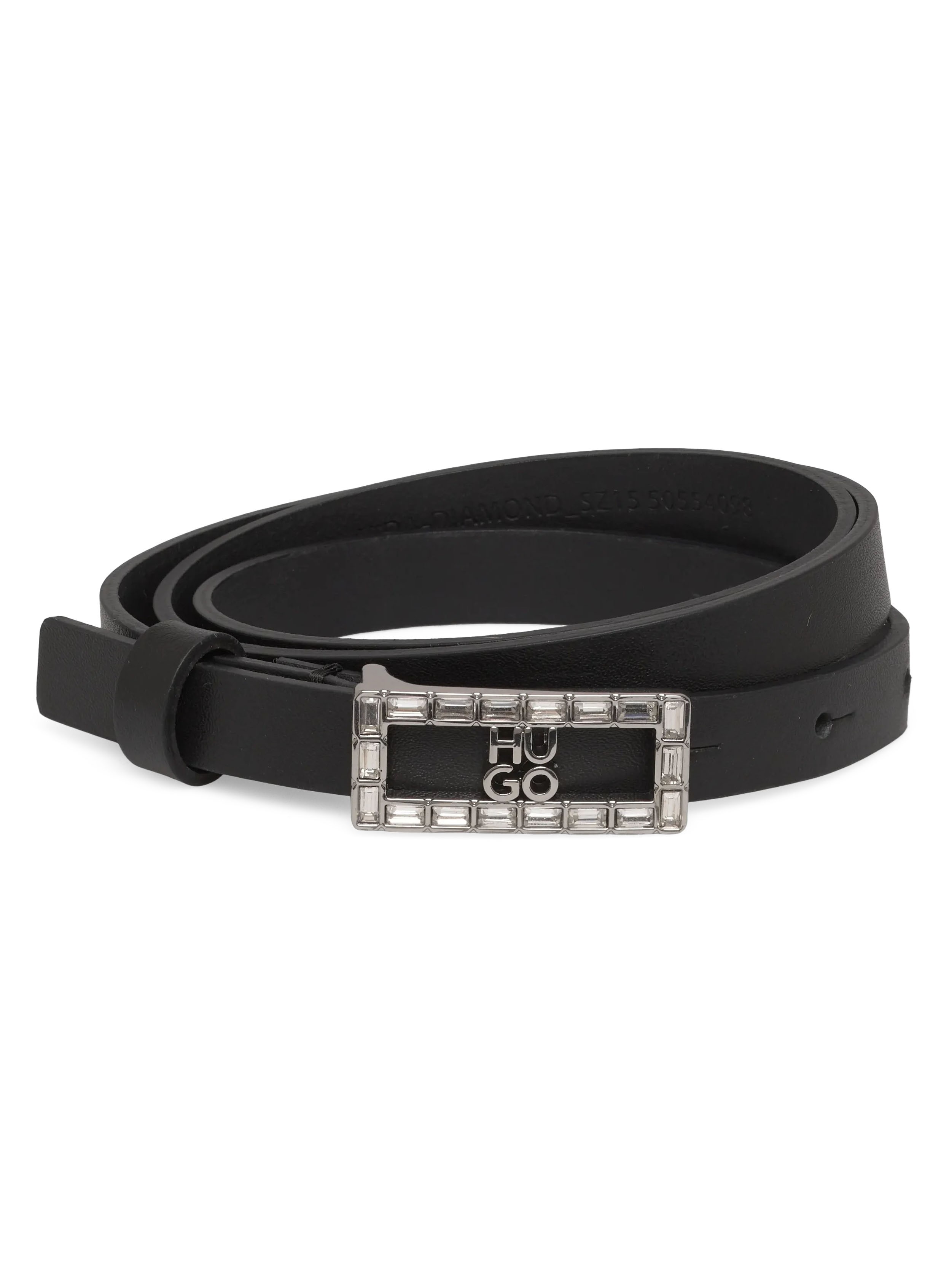 Apportez une touche éclatante à vos tenues avec la ceinture HUGO Vida Diamond. Confectionnée en cuir 100 % vachette, elle séduit par ses détails argentés brillants qui en font l’accessoire parfait pour vos looks de fête ou de soirée. Un must-have sophistiqué signé HUGO.