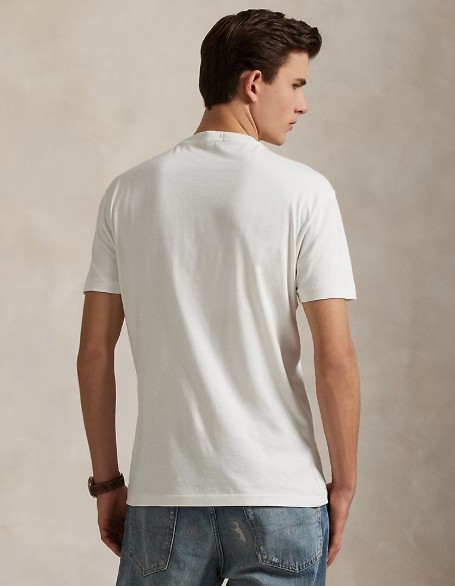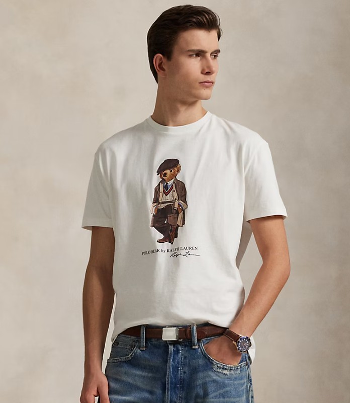 L’élément phare de ce modèle est sans conteste l’iconique Polo Bear Ralph Lauren, brodé ou imprimé sur la poitrine, qui apporte une touche ludique et reconnaissable entre toutes. Polyvalent, ce t-shirt se porte aussi bien avec un jean pour un look urbain que sous une veste légère pour une allure casual chic.