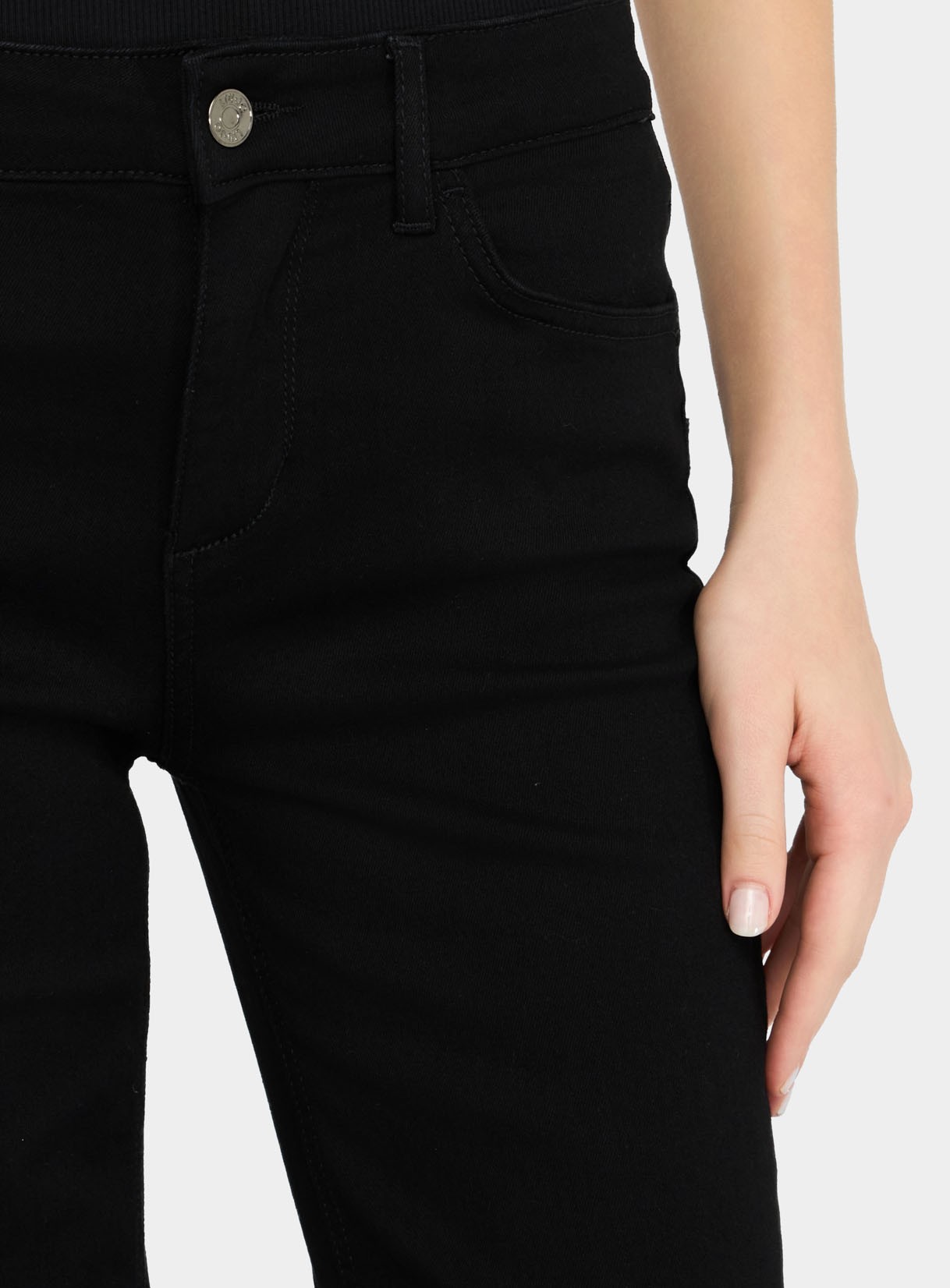 Confort sculptant et allure moderne : ce jean LIU JO Better en denim coton stretch associe découpes Bottom Up (maintien & galbe), taille régulière et jambe flare cropped. Délavage effet usé avec pli marqué, logo métal au dos et empiècement élastique à la taille pour un ajustement parfait.