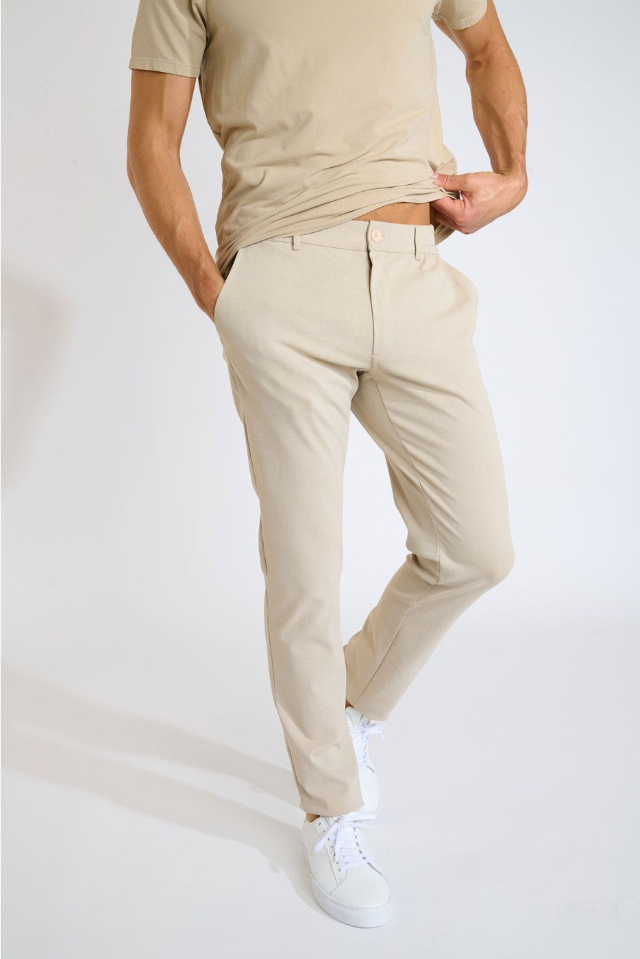 Sa coupe ajustée apporte une silhouette nette et contemporaine, tandis que son tissu assure une tenue impeccable tout au long de la journée. Facile à associer, il se porte aussi bien avec une chemise pour un look habillé qu’avec un polo ou un pull pour une allure plus casual.