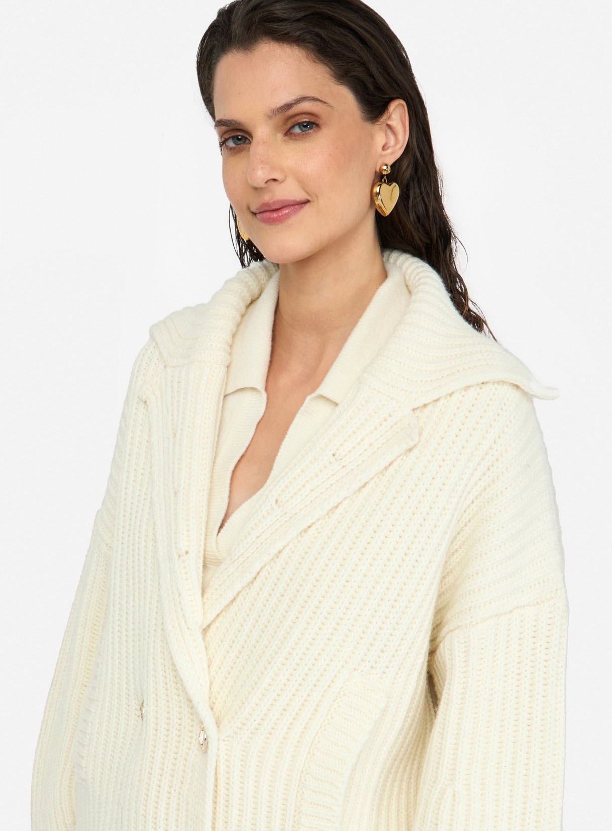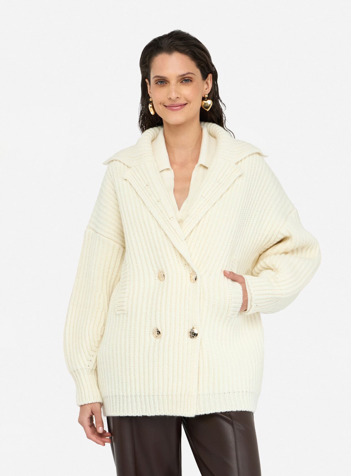 Chic et enveloppant, ce manteau LIU JO en maille de laine mélangée joue le relief avec sa côte élégante. Col à revers, manches gigot et fermeture croisée à boutons logotés dessinent une silhouette féminine et moderne. Fabriqué en Italie, il accompagne vos looks du matin au soir.