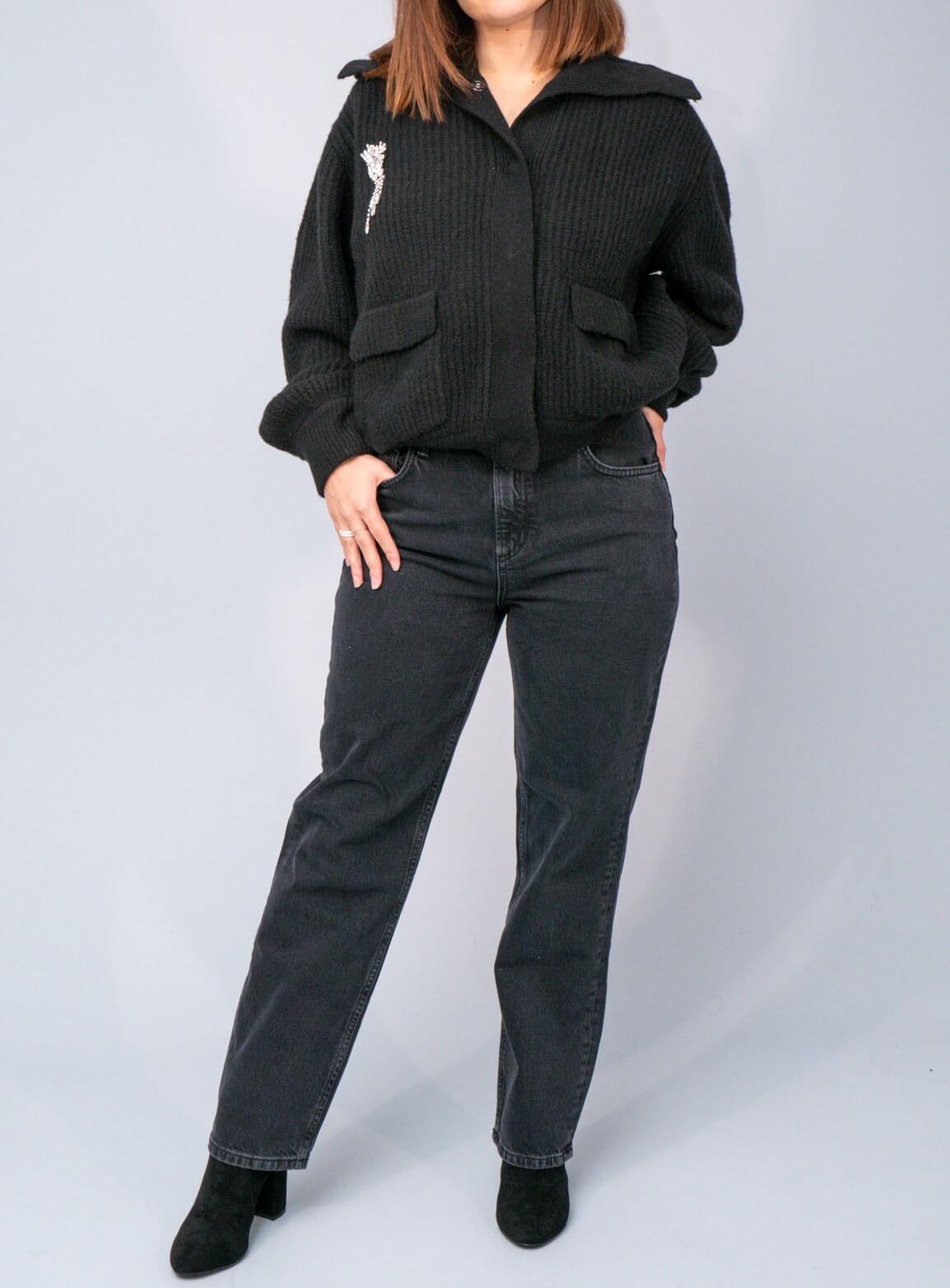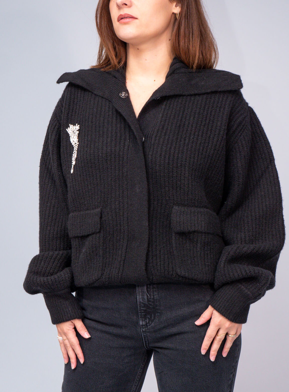 Apportez confort et élégance à vos looks du quotidien avec ce cardigan Liu Jo en laine mélangée. Son motif côtelé épais et son large col en maille lui confèrent une allure moderne, tandis que ses poches plaquées pratiques ajoutent une touche fonctionnelle. Avec sa coupe confortable et sa finition soignée, ce gilet est une pièce polyvalente, idéale pour réchauffer vos tenues tout en restant chic.