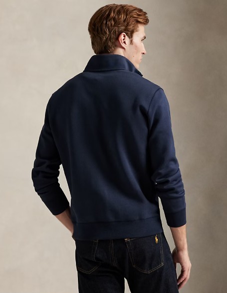 Le pull quart de zip en maille double Polo Ralph Lauren incarne le raffinement discret et l’élégance sportive caractéristiques de la maison américaine. Confectionné en coton premium, il offre une texture douce et résistante qui garantit confort et durabilité.