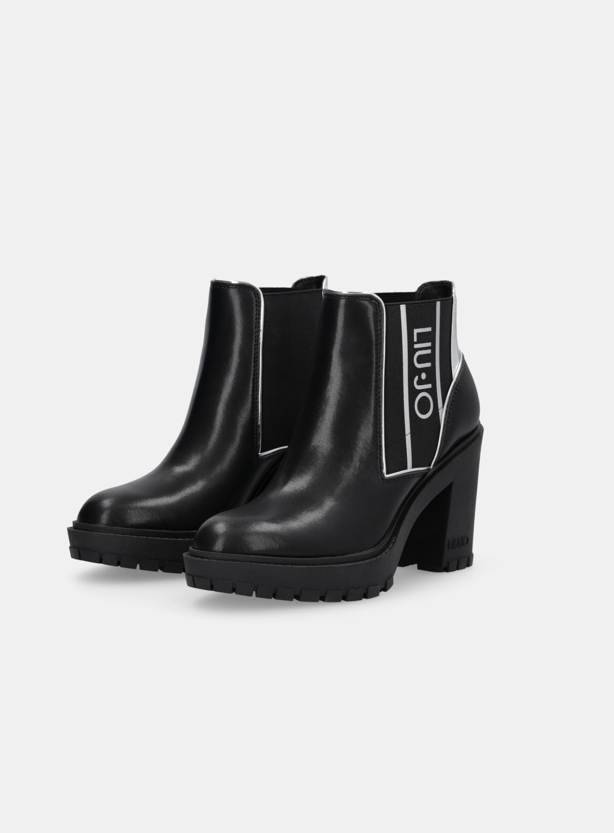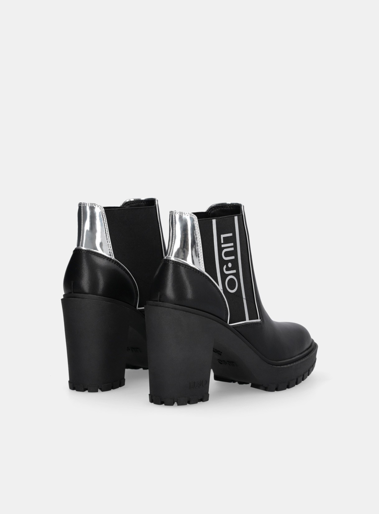 Allure affirmée et confort maîtrisé : ces bottines LIU JO en cuir misent sur un talon bloc équilibré et une semelle plateau pour gagner en hauteur sans sacrifier l’aisance. Les goussets élastiques logotés facilitent l’enfilage, tandis que le logo en relief signe une finition chic et moderne.