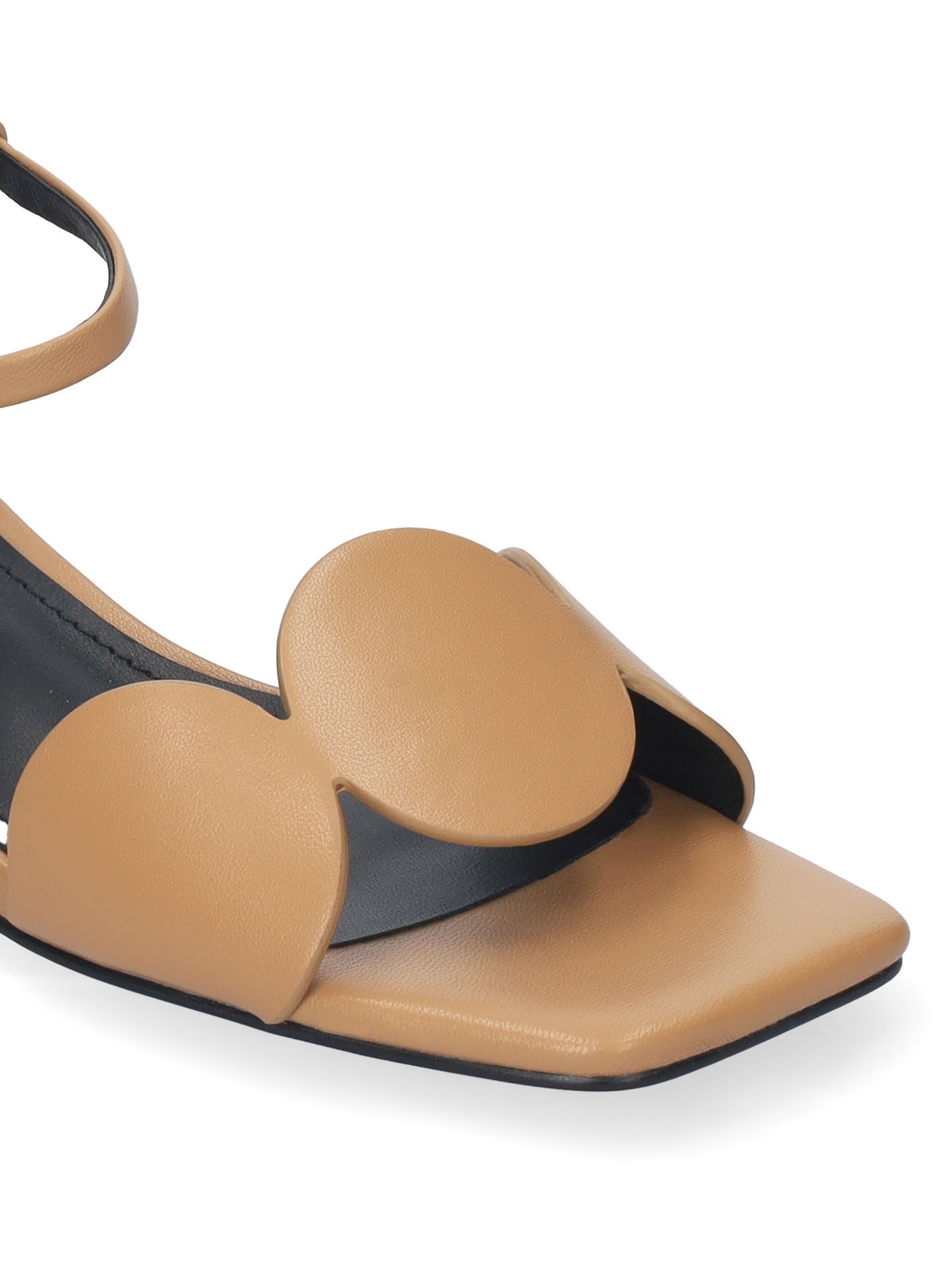 Le talon colonne de 4 cm offre stabilité et confort pour un usage quotidien ou une occasion spéciale. Le cuir apporte souplesse et qualité, tandis que la bride circulaire structure visuellement la silhouette du pied. Une sandale élégante et facile à associer.