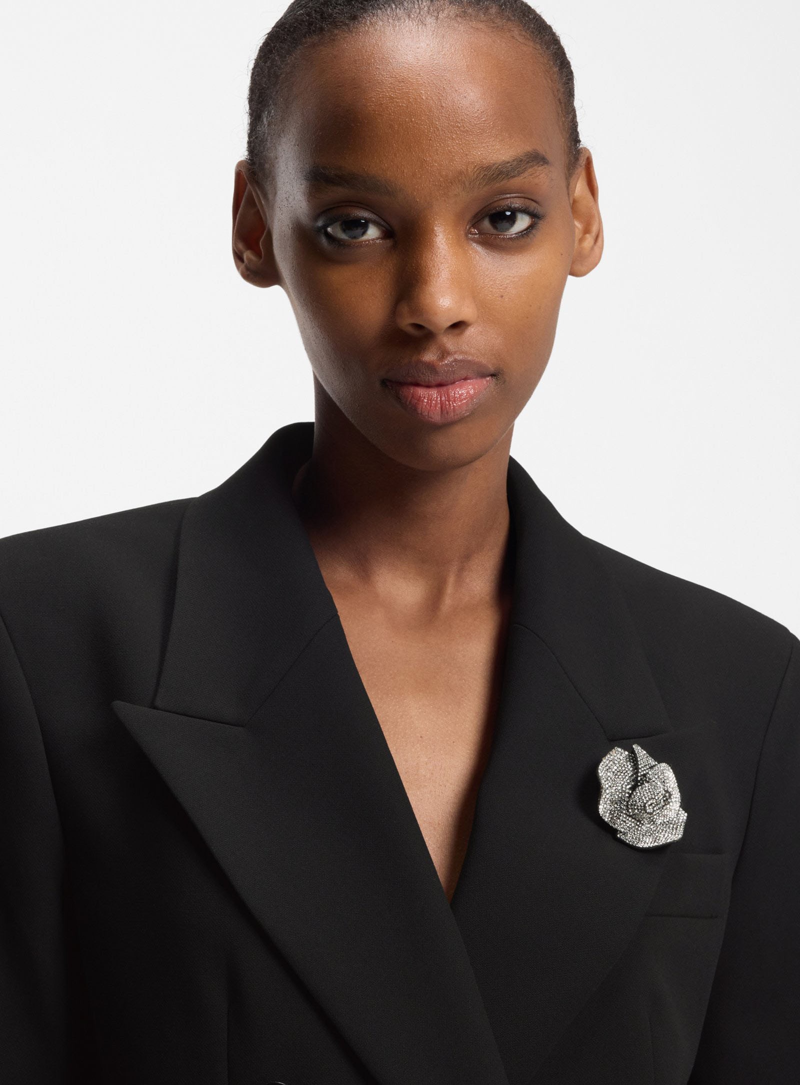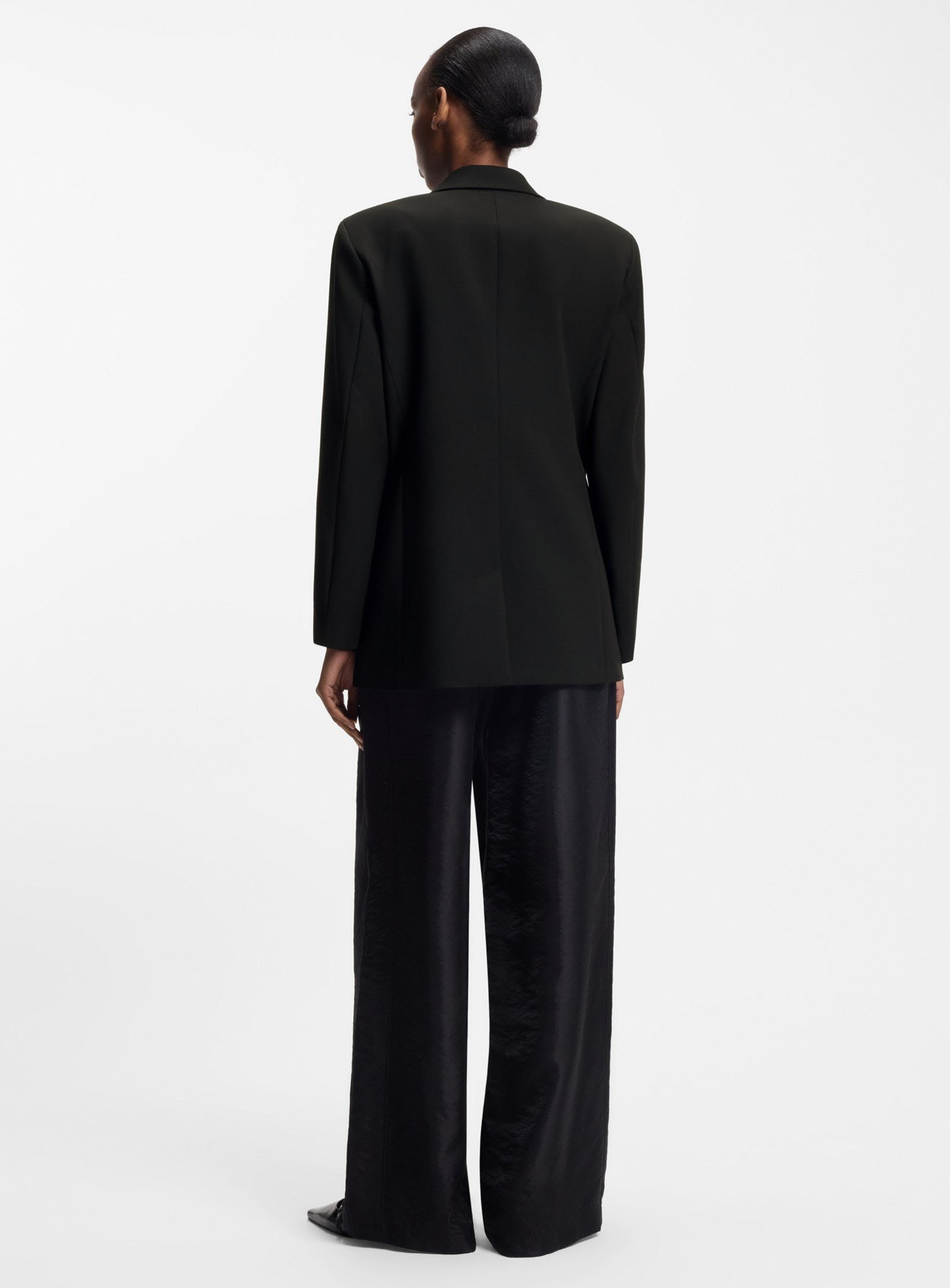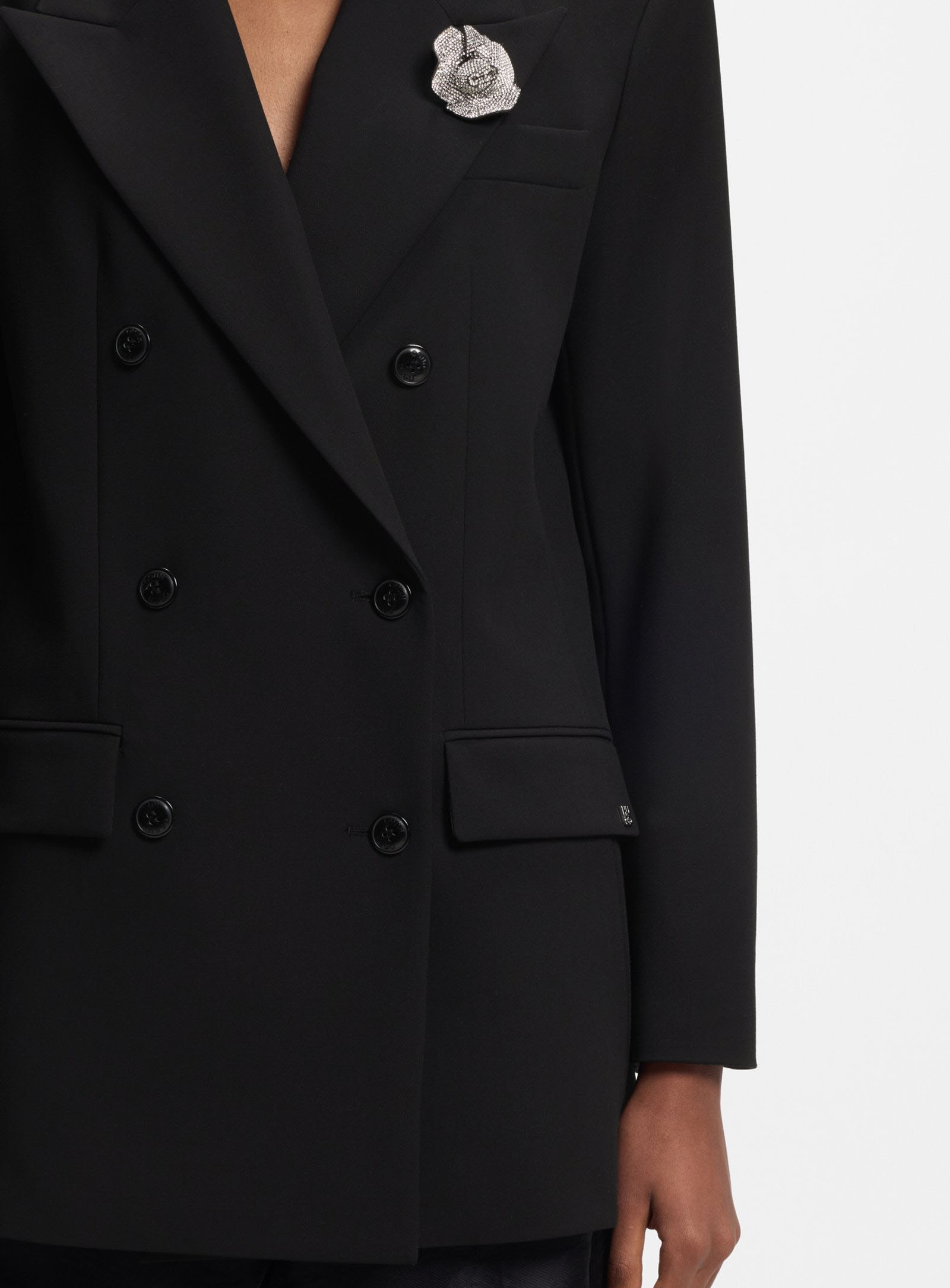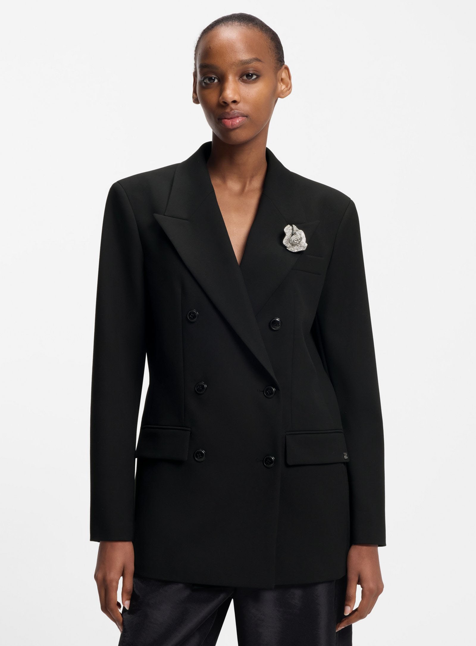 Pièce forte et ultra-moderne, la veste longue HUGO Amelora mise sur une coupe oversize et un boutonnage croisé. Le revers en pointe est orné d’une broche en strass amovible, pour un twist bijou du bureau au soir. Tissu stretch entièrement doublé, fente dos, poches poitrine passepoilées et poches à rabat : allure tailleur, confort assuré.