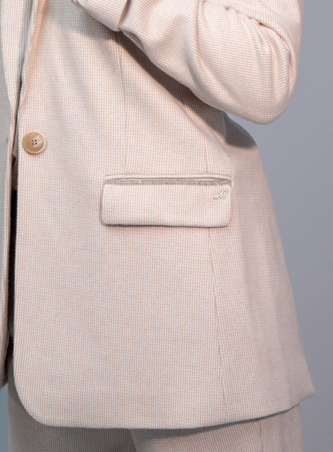 Élégant et confortable, le blazer Irene de Mason’s mise sur une maille jersey à petits pois pour un relief chic. Sa ligne longue fermée par un bouton, ses poches à rabat et le rivet “M” signature en font une pièce facile du bureau au soir, à porter seule ou coordonnée à un chino.