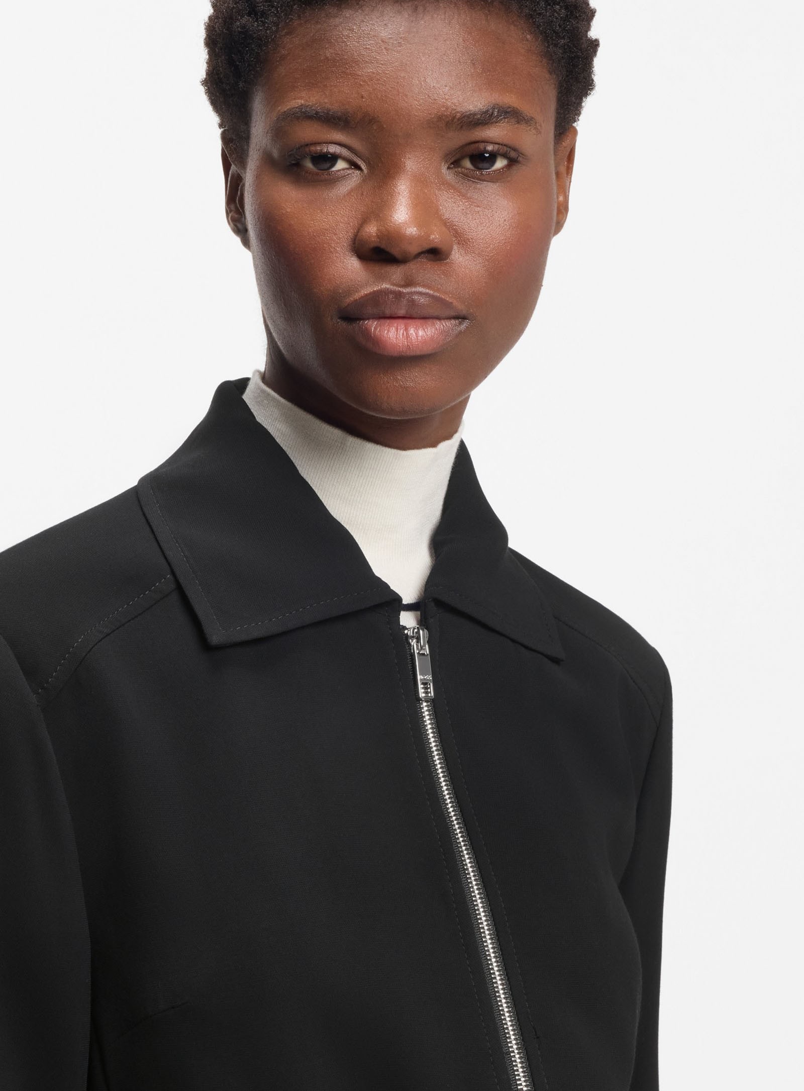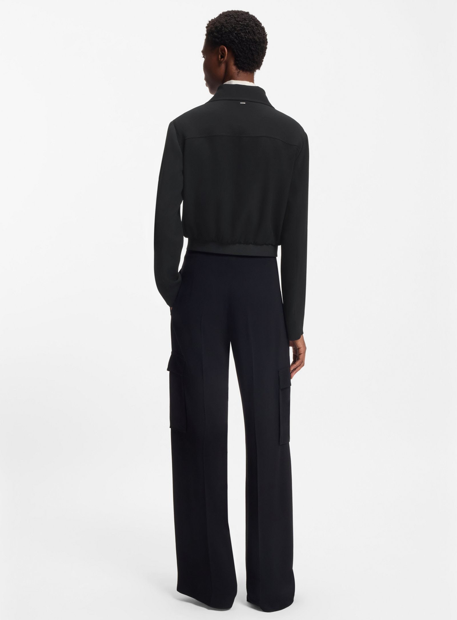 La coupe droite, légèrement raccourcie, modernise la silhouette et se superpose facilement sur un top ou une maille fine. Le crêpe apporte ce mouvement fluide qui fait tout de suite “habillé”, sans rigidité. La fermeture double zip permet de jouer l’allure : fermé pour une ligne nette, entrouvert pour plus de décontraction. BOSS Jocalena est une pièce idéale pour composer des looks faciles, soignés, du matin au soir.