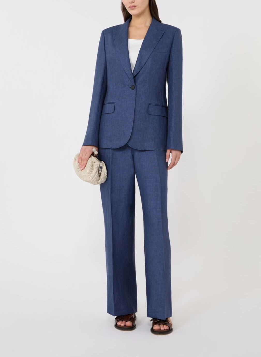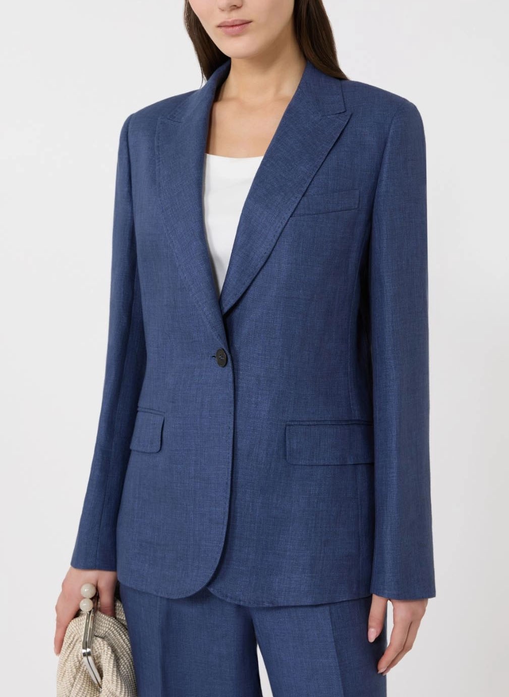 Chez Renato Donna, nous sélectionnons des pièces Weekend Max Mara qui incarnent une élégance naturelle et contemporaine. Le blazer Nalut, en pur lin et à la coupe subtilement cintrée, est une pièce tailoring essentielle pour sublimer vos silhouettes estivales avec sophistication.